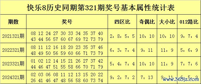 万妙仙欢娱8历史同时第321期奖号基本属性分析